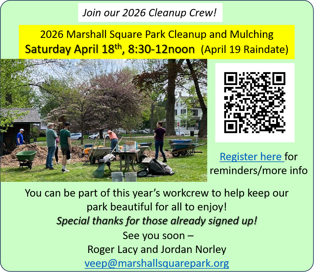 The Friends of Marshall Square Park has many ongoing projects, made possible by donations by our members and sponsors. Click the picture to learn more about our accomplishments in the care, preservation, and improving of Marshall Square Park.